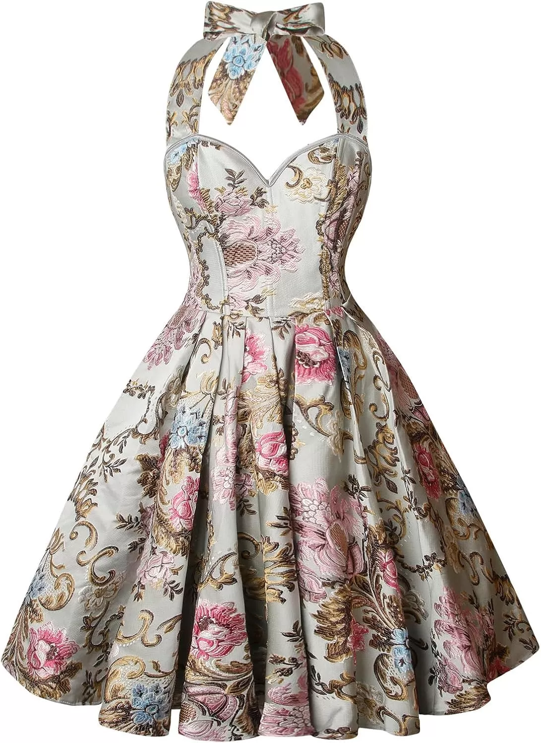 Charmian Women’s 1950s Vintage Retro Sleeveless Swing Floral Halter Corset Dress(Multicolored)